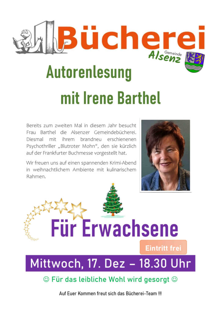 Das war: Lesung in der Bibliothek in Alsenz am 15.01.2025 um 18.30 Uhr.